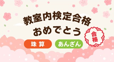 教室内検定で、6級(あんざん)1名、5級(あんざん)1名の生徒さんが合格しました。